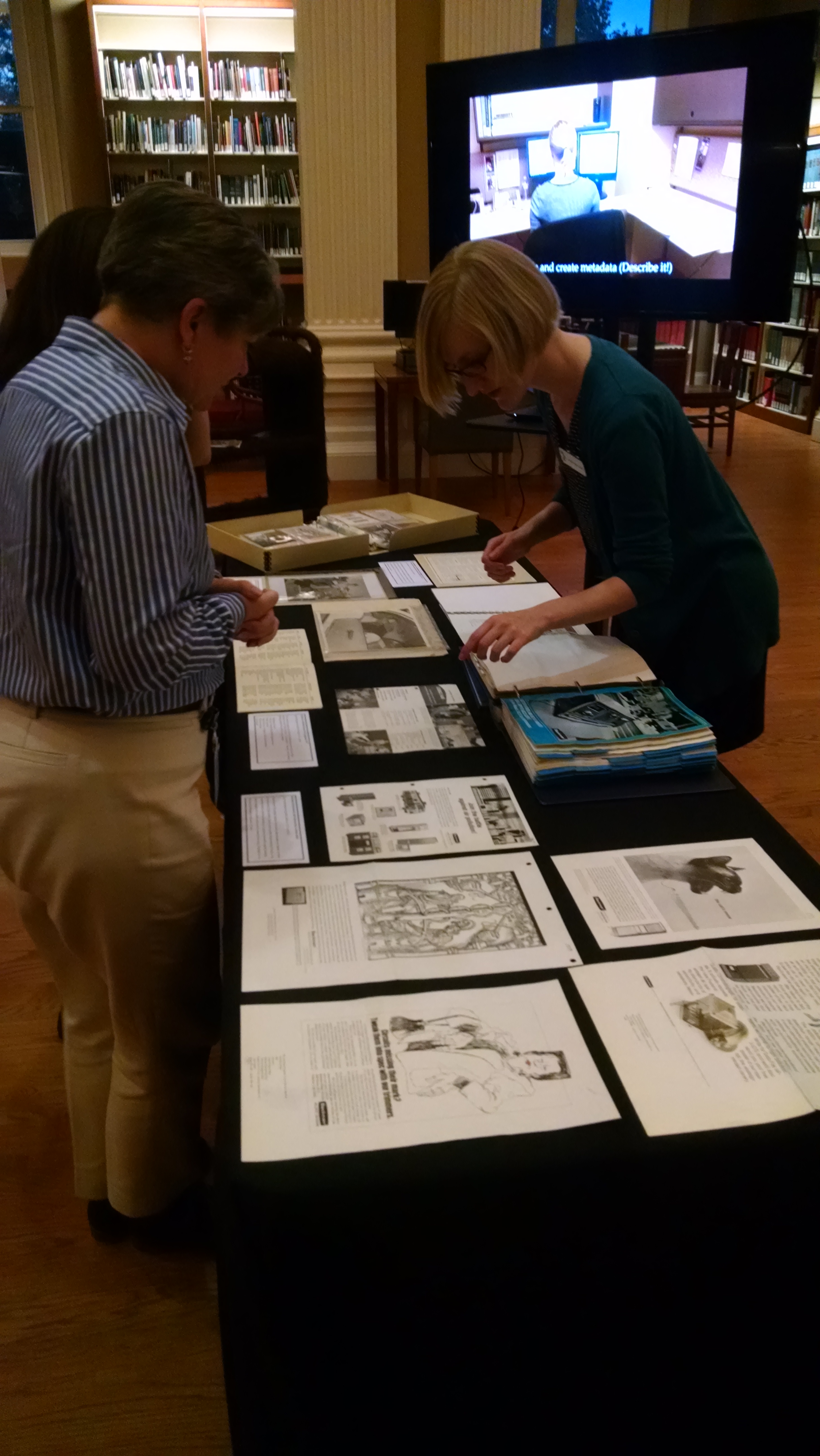 Staff were on hand to talk about their work and explain context for favorite selections, but the real stars of the evening were the documents on view. Selections of archival documents, rare books, photographs, and prints (like the pictured advertising card below), and even books of carpet and dye samples, displayed the depth and breadth of the Othmer Library’s collections. If you missed this rare opportunity to see the library in person, follow Othmeralia on Tumblr to see new highlights added on an ongoing basis.
