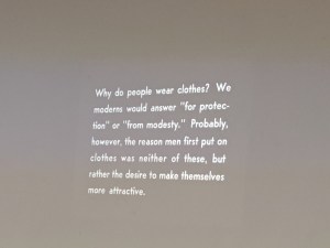 The Penn Museum has a large collection of film strips, many from their education department. We were treated to slides about the written language, ancient Egypt, and the history of fashion. (Why do people wear clothes? To make themselves more attractive, of course!)