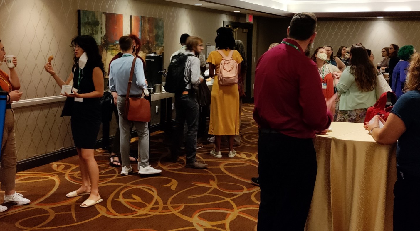 Before arriving, I took advantage of the SAA mentor program for the event. This program is offered free of charge to connect you with someone attending the event to provide some advice and a friendly face to talk to. I met Bryan, who does digital preservation, and we had multiple conversations throughout the event. I asked him about what events I should attend and general career advice. Having someone to talk to and get some personal advice was a massive help in calming my nerves. I recommend taking advantage of this when you are going for the first time.