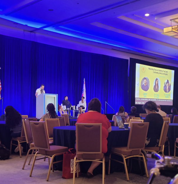 I registered for the conference, reserved my hotel, and booked my flights, but it was only three days before I had to leave when I unfortunately tripped and fell, landing on my foot wrong and causing it to fracture in two places. However, I did not let that stop me. My doctor cleared me to attend as long as I was sure to not put any weight on my foot, and so on to Anaheim I went. It was a busy three days, jam-packed full of sessions, forums, networking opportunities, and many thought-provoking conversations to be had with colleagues. Not to mention the two sessions where I was able to present my poster alongside other graduate students and professionals in the field.