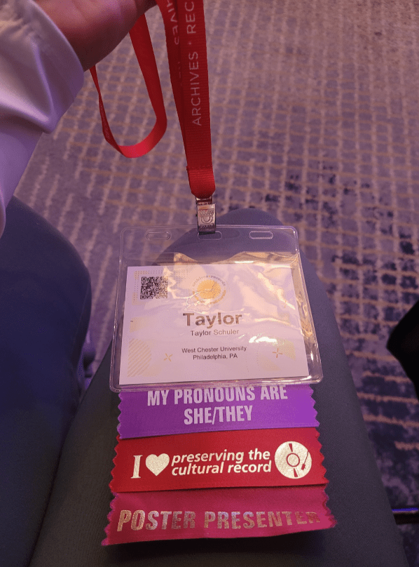This year I was awarded a travel grant by the Delaware Valley Archivists Group to help support my in-person attendance at the Society of American Archivists Annual Conference in Anaheim, California. This is only my second time attending the conference, but I felt it was extremely important for me to go in person, this year especially. I’m rather early in my career, and have been through a lot of professional changes over the past year. In August of 2024, I was a Library and Archival Manager at a county historical museum in Texas. It was only this past summer that my family and I picked up everything to move to Philadelphia, PA. I know how beneficial regional archivists groups can be, so I joined DVAG even before I moved as a way to network and get to know the people in my new archives community.